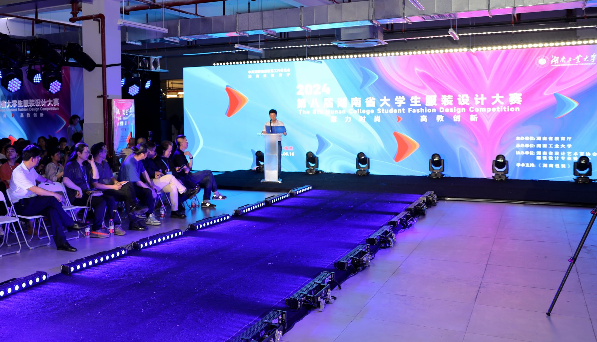 6月16日,由湖南省教育厅主办、我校承办的第八届“聚力时尚·高教创新”湖南省大学生服装设计大赛在我校盛大举行。大赛经过精心筹备与激烈角逐,终于迎来了激动人心的决赛及展演环节。此次大赛旨在全面检阅湖南省高校服装设计专业学子的创新能力和实践水平,并为他们提供一个展示才华的广阔舞台,进一步促进不同学校、不同专业之间的交流与合作,同时提升我校在服装设计领域的知名度和影响力。