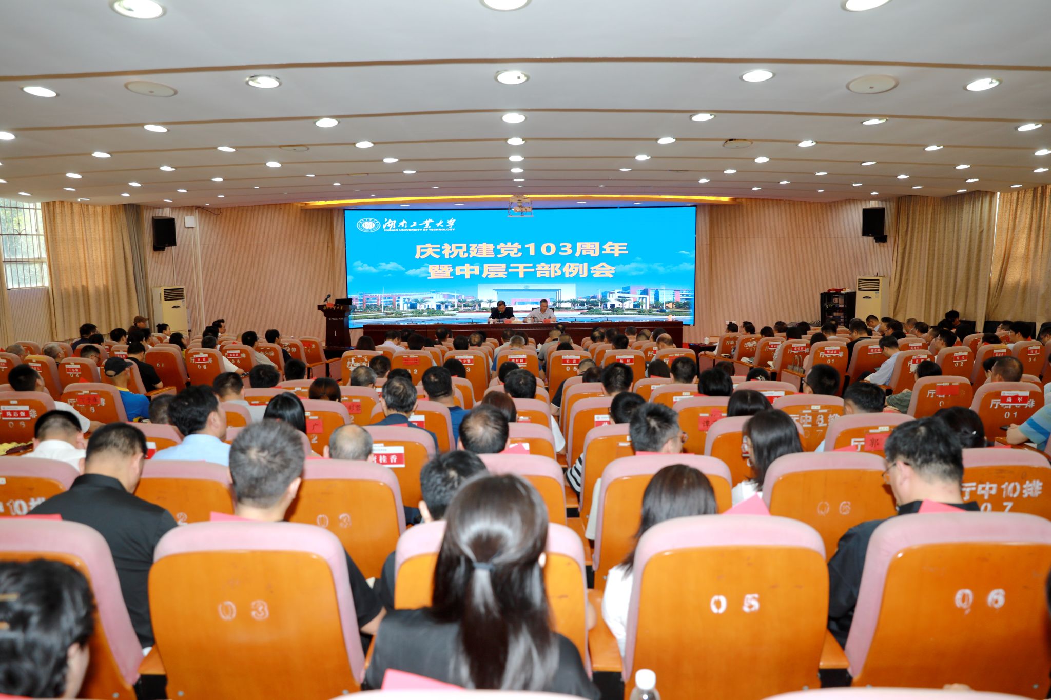 7月1日下午,我校在崇美楼129报告厅召开庆祝建党103周年暨中层干部例会,党委书记刘望主持会议并讲话,校长蒋昌波作工作部署,全体在家校领导、各二级单位副处级以上干部参加会议。会议分为两个环节,第一个环节是举行“庆祝建党103周年”活动,第二个环节是召开中层干部例会。