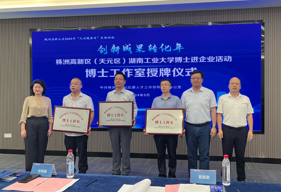 9月4日,我校与株洲高新区、天元区联合举行博士进企业活动,向湖南宏工智能科技有限公司、株洲嘉成科技发展股份有限公司、湖南润伟智能机器有限公司授牌博士工作室。