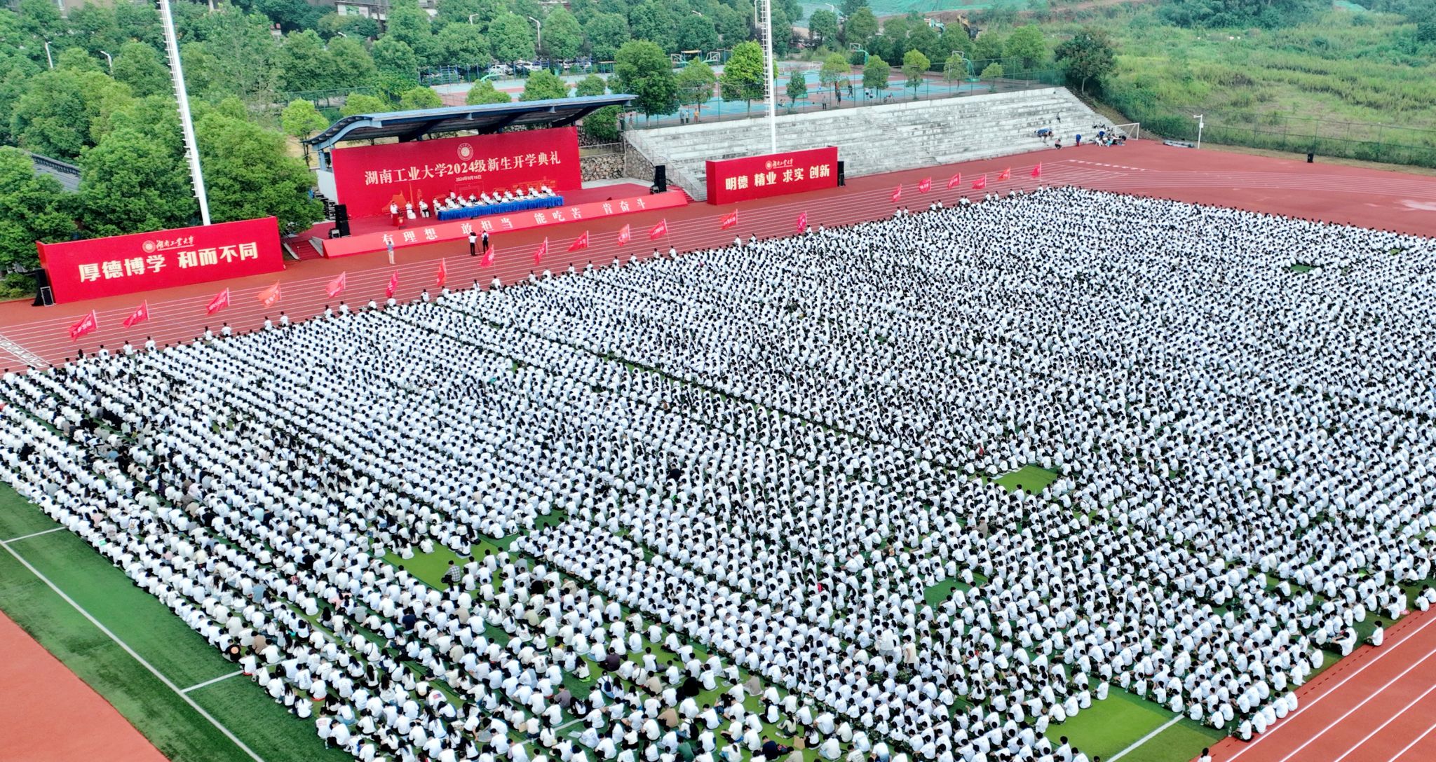 9月16日上午,我校2024级新生开学典礼在河西校区第二田径场举行。全体在家校领导出席,党委书记刘望主持开学典礼。
