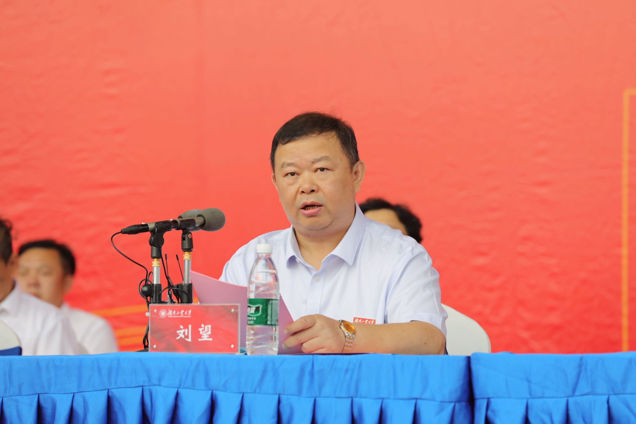 典礼中,校领导为新生代表佩戴了校徽,象征着他们正式成为湖南工业大学的一员。陈婧丹带领全体新生进行了庄严宣誓。
