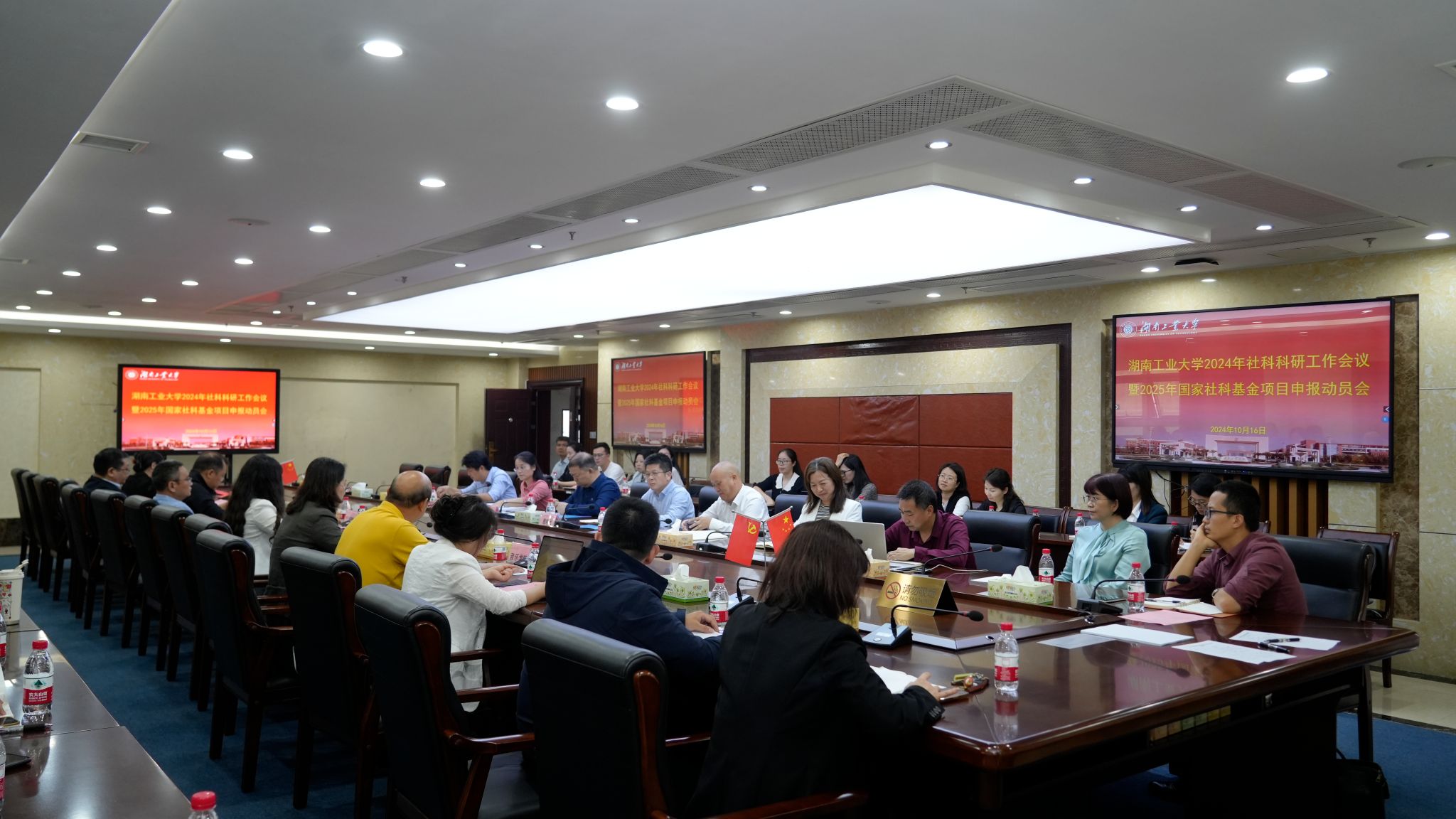 10月16日,我校在崇德楼401会议室召开2024年新学期社科工作会议暨2025年国家社科基金项目申报动员会,部署2025年度国家社科基金项目申报工作。党委书记刘望出席会议并做动员讲话,副校长殷晓元主持会议。宣传统战部、人事处等部门负责人、各人文社科学院院长、分管科研副院长、2024年国家社科基金项目负责人代表、准备申报2025年度国家社科基金项目教师、科研秘书、社科处全体人员近100人参加会议。