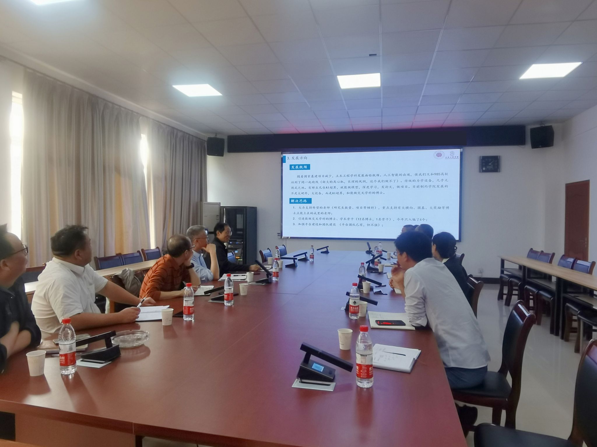 在土木工程学院,相关负责人汇报了学院的现状、未来发展规划、重点建设项目以及在建设过程中遇到的困难。蒋昌波对学院近年来取得的成就表示了高度赞赏,尤其对学院在学科建设与人才引进方面的改革给予了充分肯定。他指出,博士点建设是学院发展的关键,人才引进工作应以此为核心,注重人才素质,确保引进的人才与博士点学科建设的需求相契合。同时,他强调了建立高质量科研平台和发展环境的重要性,以利于人才能力的充分发挥。在学科建设方面,他建议持续优化科研平台建设体系,加强学科间的融合,进一步提升学院的科研与教学水平,实现人才引进与学科发展的良性互动,为学院的持续发展打下坚实基础。