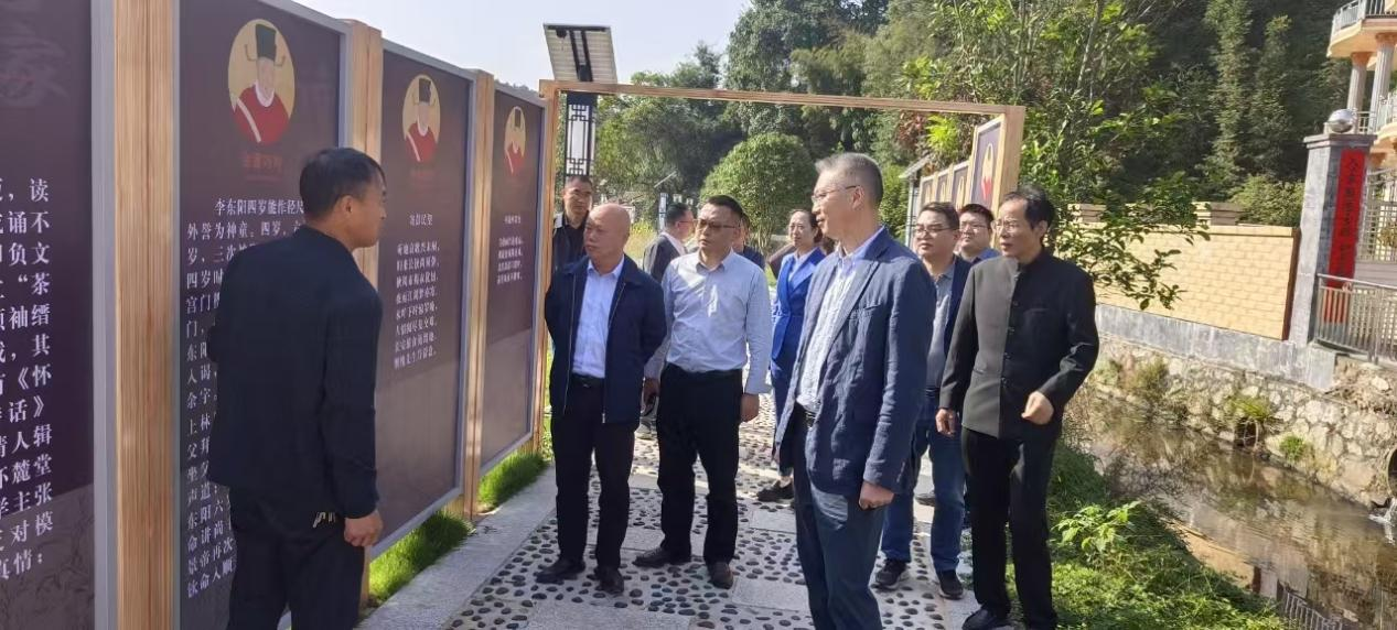 上午,蒋昌波一行首先实地考察了龙匣村的莲子加工厂、充电桩站、东阳文化长廊、村民文化广场、李氏祠堂、乡村振兴就业帮扶车间、千亩荷塘观景区等多个重要乡村振兴点,并了解龙匣村独具特色的人文历史。