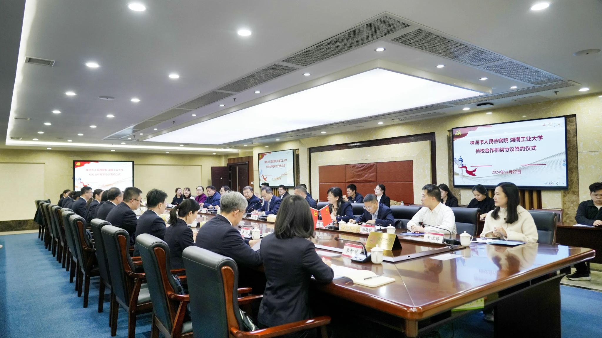 为强化检察理论研究,促进法治人才培养,11月27日,我校与株洲市人民检察院举行校检合作框架协议签约仪式暨“知识产权综合司法保护”检校论坛。党委书记刘望,党委副书记王利华,株洲市人民检察院党组书记、代理检察长黄燕等领导出席会议。王利华主持会议。