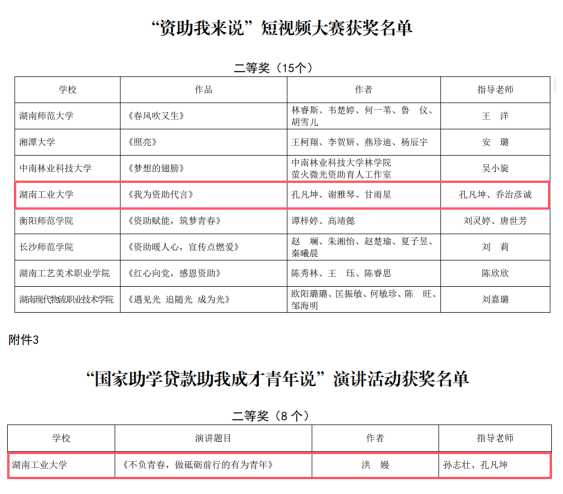 我校对此活动的开展给予了高度重视,通过积极的组织工作,经学院推荐、学校的选拔程序,参赛作品《我为资助代言》荣获“资助我来说”短视频大赛省级二等奖;同时,《不负青春,做砥砺前行的有为青年》主题演讲在“国家助学贷款助我成才青年说”演讲大赛中荣获省级二等奖及优秀组织奖等多项荣誉。