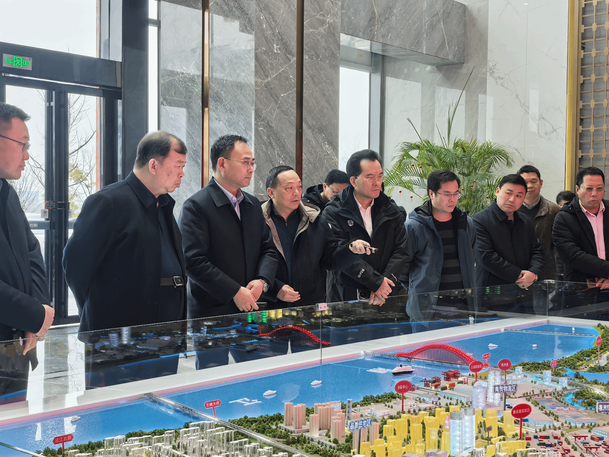 与会人员听取了清水塘片区沙盘讲解,并在双碳大厦远眺清水塘片区整体风貌。