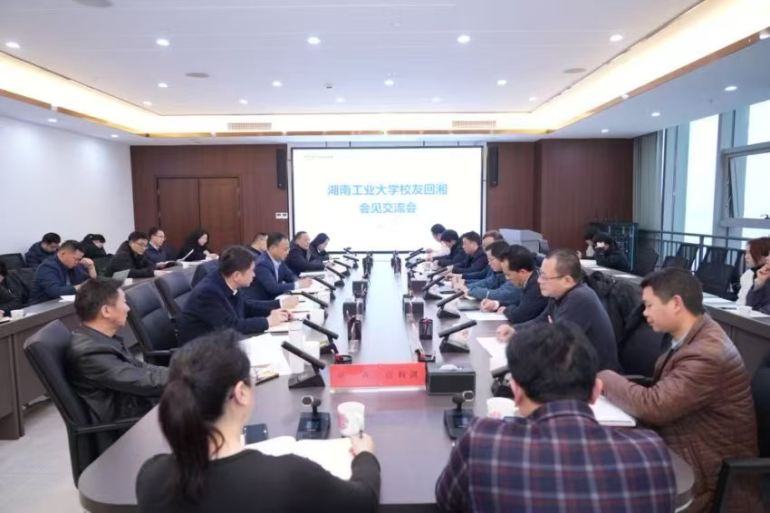 2月21日下午,我校“校友回湘”见面交流会暨清水塘产业新城项目洽谈活动在清水塘双碳大厦会议室召开。湖南省教育厅学生处副处长、校友回湘专班执行副主任陈汉光,株洲市委副书记、市委政法委书记何恩广,我校党委书记刘望,副校长范晓阳、于惠钧出席交流会,我校杰出校友代表胡治国、谭运牛,株洲市教育局党委书记、局长李易常,石峰区委常委、副区长车四林,清水塘投资集团董事长肖和政、副总经理丁勇,以及我校科学技术处、创新创业学院、校友联络与服务中心等相关负责人参加会议。
