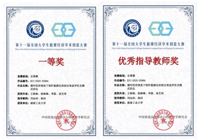 在第十一届全国大学生能源经济学术创意大赛中,我校经济与管理学院王杨杨同学团队在刘运材和杨洁老师指导下,凭借参赛作品《循环经济视角下秸秆能源化的综合效益评价及模式优化》荣获全国一等奖,两位指导老师荣获“优秀指导老师奖”。