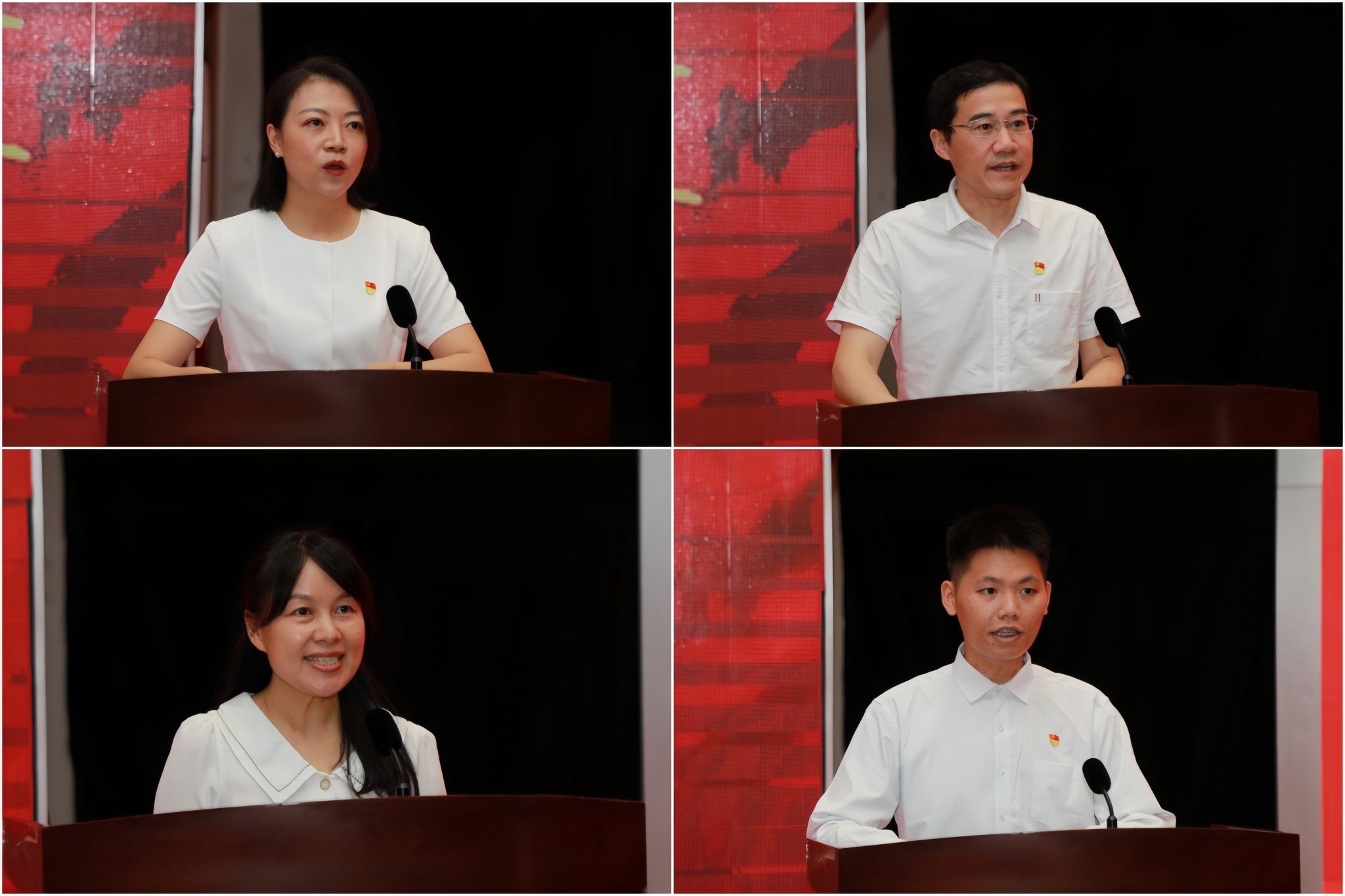 先进二级党组织代表唐秋玲、先进党支部代表余江鸿、优秀教工党员代表周欢、优秀学生党员代表魏吉阳同学先后结合工作、学习经历做了情真意切的发言。