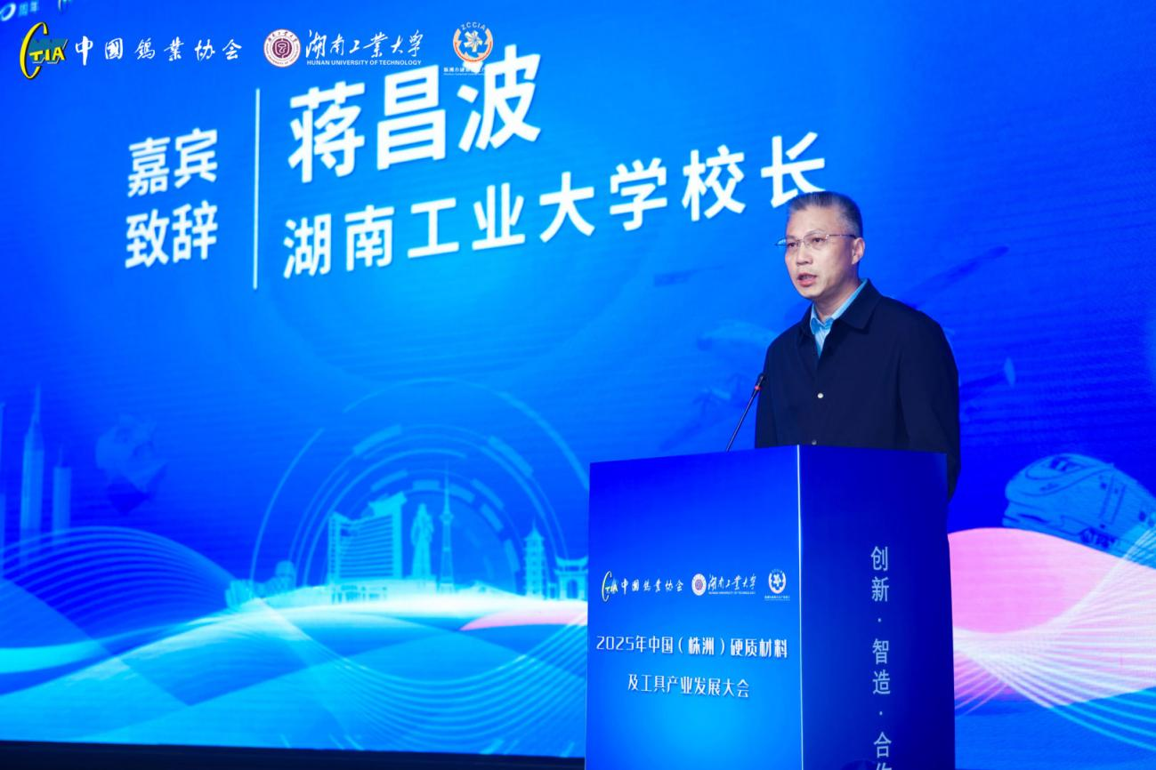10月20日至22日,2025中国硬质材料及工具产业发展大会在湖南株洲举办。大会以“创新、智造、合作、共赢”为主题,由中国钨业协会、湖南工业大学、株洲市硬质合金产业协会联合主办。中国工程院院士黄伯云、赵中伟,中国有色金属工业协会副会长、中国钨业协会会长陈学森,市委书记曹慧泉,市委副书记、市长陈恢清,我校校长蒋昌波、副校长龙永红等出席会议。500 余名专家学者、企业代表齐聚一堂,共同探讨产业升级路径。