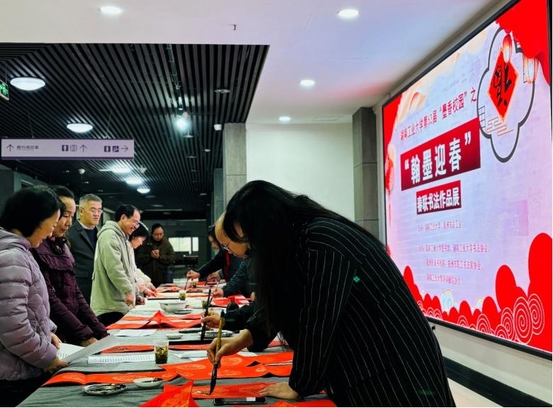 “无联不成春,有联春更浓”,作春联、写春联、贴春联、赏春联是我国民间的传统习俗。为弘扬中华优秀传统文化,丰富教职工的精神文化生活,营造喜庆热烈、文明祥和的校园氛围,1月17日,我校与株洲市总工会联合主办,校图书馆承办的第63届墨香校园之“翰墨迎春”活动在图书馆二楼展厅举行。