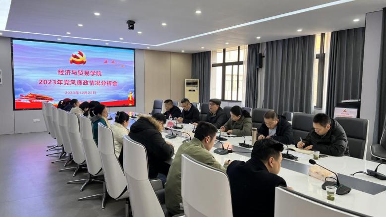 12月28日,经济与贸易学院召开了党风廉政建设情况分析会议。本次会议邀请了校纪委委员、资产管理处负责人出席,学院班子成员、三办主任以及党支部书记参加会议。