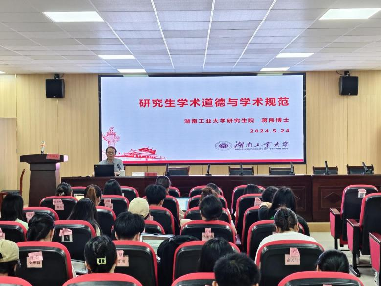 5月24日下午,我校2024年度研究生科学与人文素养系列讲座第十六讲在崇真楼演播厅举行。研究生院蒋伟博士为我校2023级研究生作《科研之矩:研究生学术道德与学术规范》专题讲座。