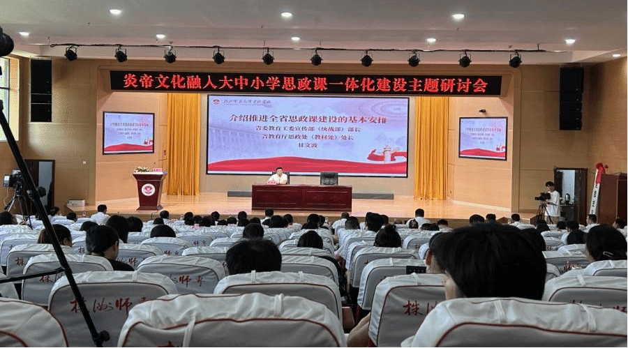 7月4日下午,“炎帝文化融入大中小学思政课一体化建设”研讨会,在株洲师范高等专科学校举行。省委教育工委宣传部(统战部)部长、省教育厅思政处(教材处)处长甘文波出席,株洲师范高等专科学校、湖南省炎帝陵基金会、株洲市教育局、教育科学研究院、湖南师范大学、我校马克思主义学院等相关机构负责人和株洲市大中小学思政课教师代表近300人参加会议。