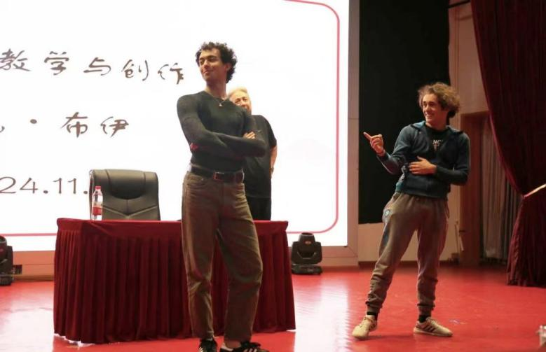 在互动环节,同学们积极探讨如何在创作中融合传统芭蕾与多元文化,以及如何将中国元素融入芭蕾艺术。丹斯帕托特芭蕾舞团的成员们以专业而幽默的表演方式回应了这些问题,赢得了在场师生的热烈掌声。