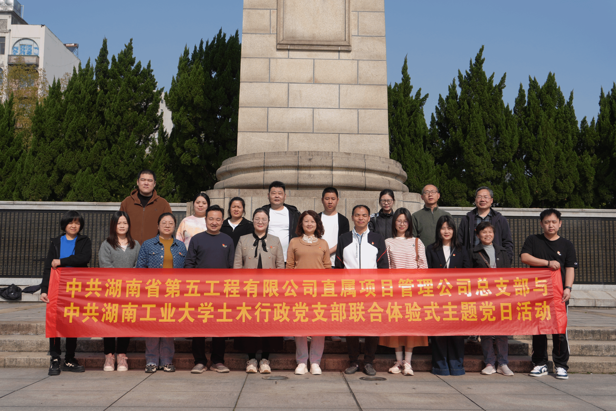 3月22日,土木工程学院土木行政党支部与湖南省第五工程有限公司直属项目管理公司党总支在株洲流芳园联合开展“党建引领聚合力,院企合作谱新篇”主题党日活动。