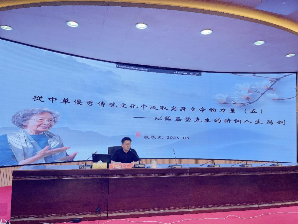 5月23日下午,我校2025年度研究生科学与人文素养系列讲座第十三讲在崇美楼129报告厅举行。副校长殷晓元教授作题为《从中华优秀传统文化中汲取安身立命的力量——以叶嘉莹先生的诗词人生为例》专题报告。