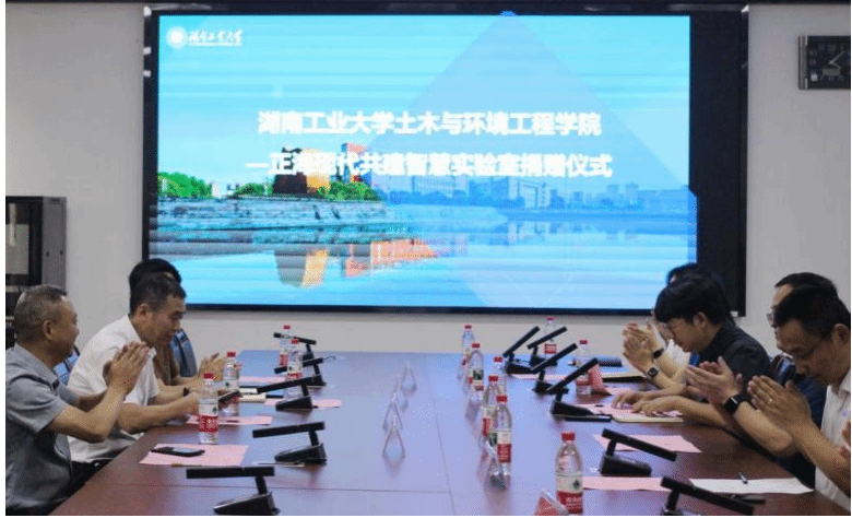 近日,我校与湖南正海现代实验室设备有限公司(以下简称“正海公司”)共建智慧实验室捐赠仪式在崇真楼205会议室举行。副校长何杰出席,学院领导班子成员、正海公司总经理潘训兵、副总经理曾征兵,我院优秀校友、公司技术负责人黄寒毅和学院建环能源系教师代表参加捐赠仪式。